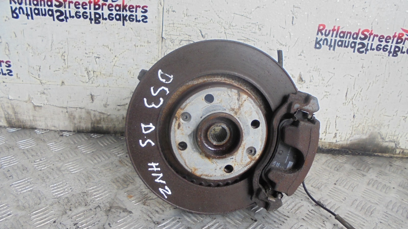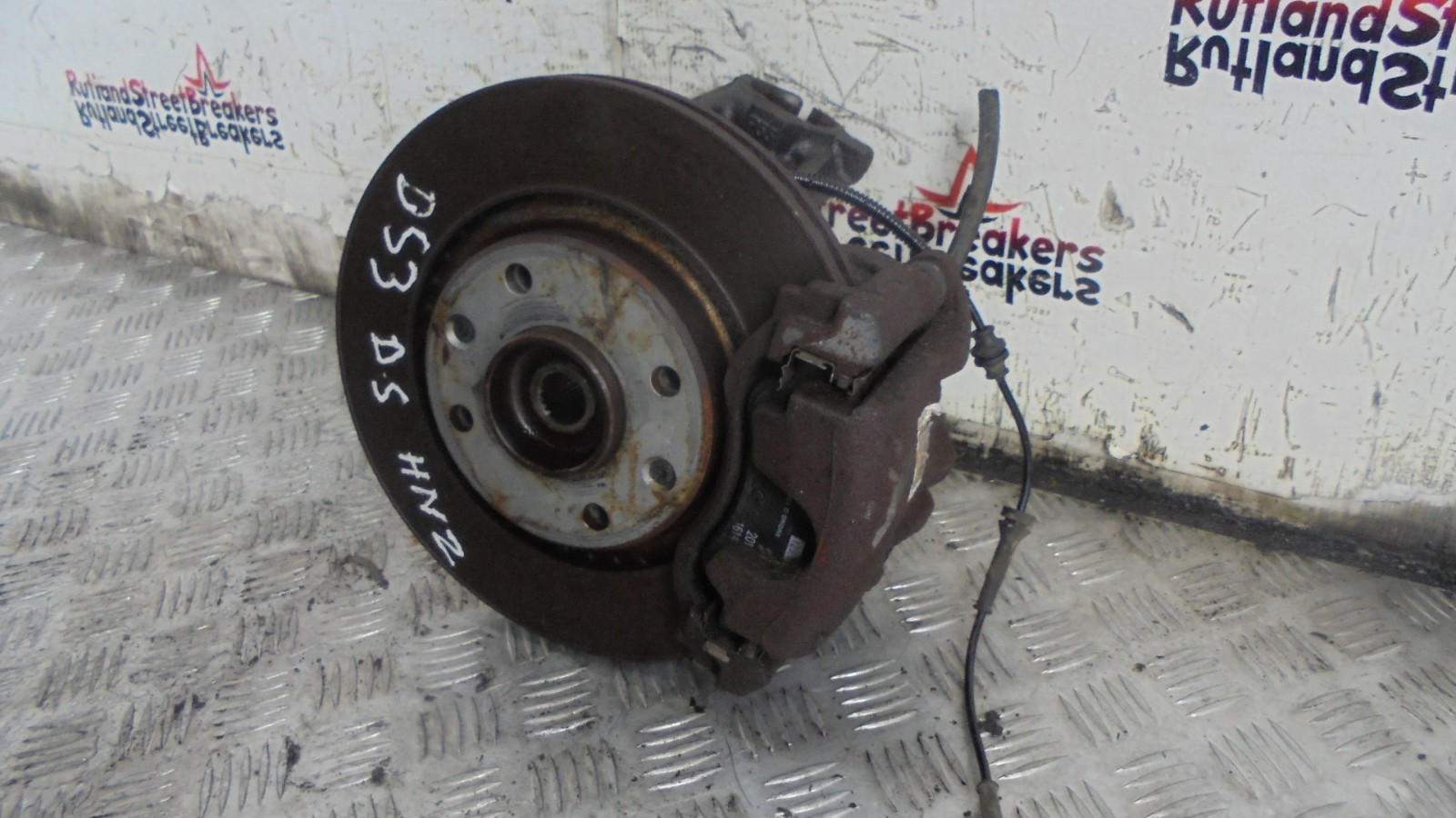 You are buying a used driver side front hub, disc, and caliper for a Citroën DS3 1.2 Petrol (2009 to 2018).