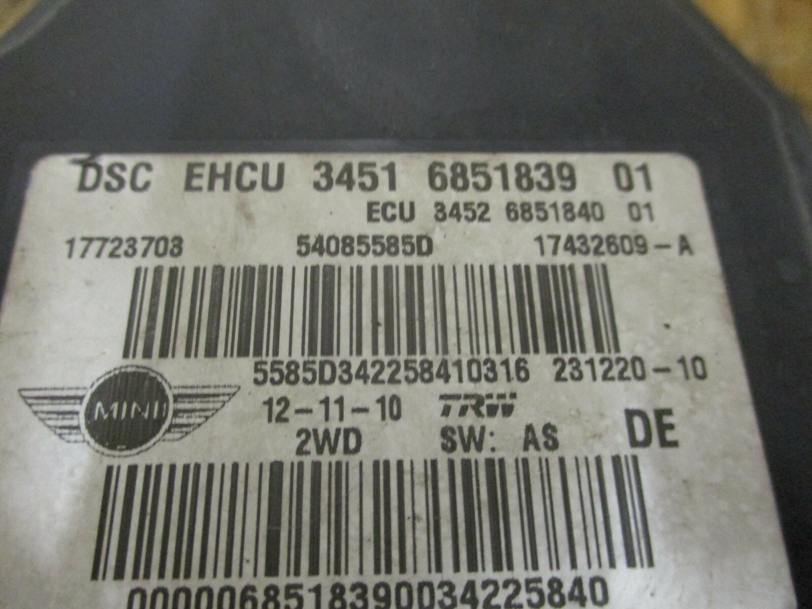 MINI ONE / COOPER / S R56 R57 ABS PUMP AND ECU 6851839 2007 TO 2013