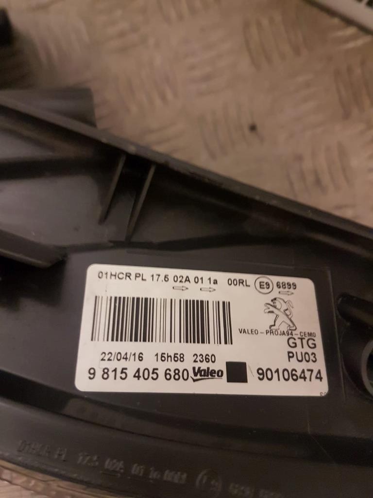 PEUGEOT 2008 PASSENGER SIDE HEADLIGHT 9815405680 1685353780 2013 TO 2018 DAMAGED