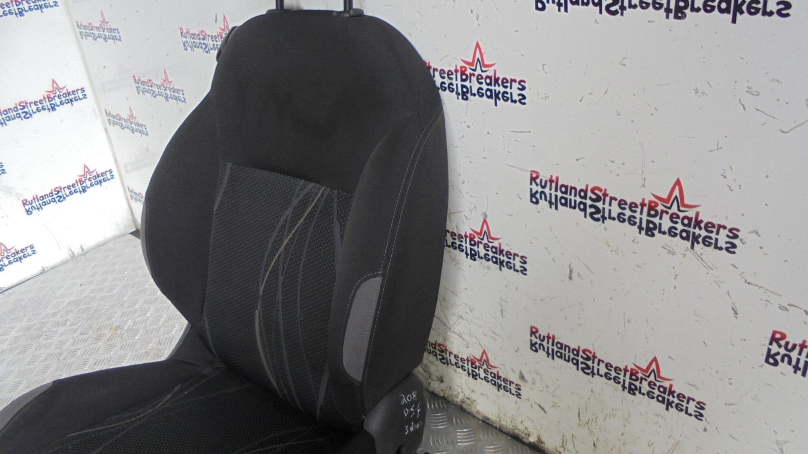 PEUGEOT 208 3 DOOR FRONT DRIVER SIDE SEAT IN BLACK / GREY CLOTH 2012 TO 2018