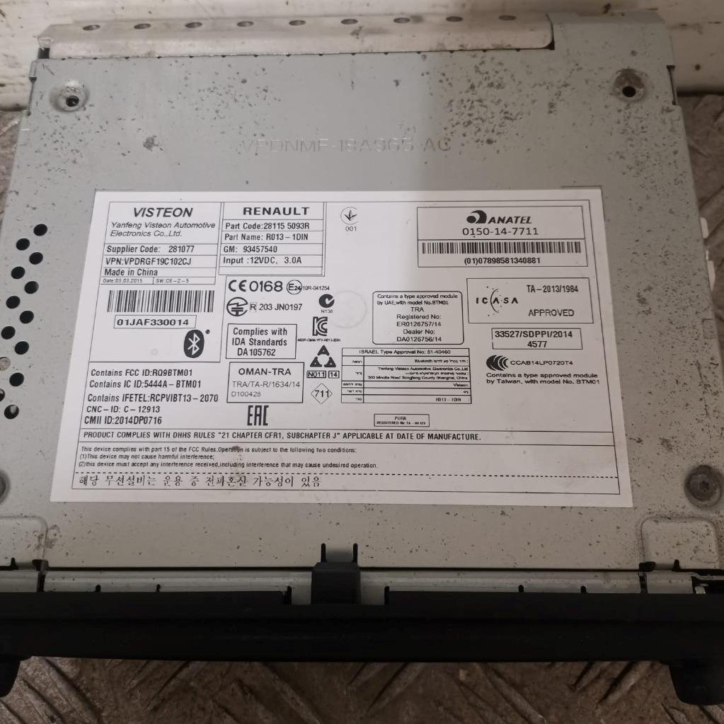 Renault Trafic / Vivaro Stereo Head Unit Radio USB AUX MP3 2014 to 2019